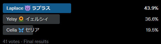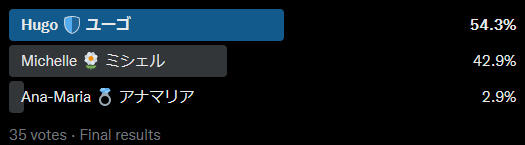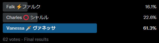 These are polls posted on Mondays that start a few weeks before the event does and ends when all characters are in a poll.✨これは、イベントが行われる数週間前に開始され、すべてのキャラクターが投票に参加した時点で終了する、月曜日に投稿される投票です。✨The characters were chosen randomly after the prompt was made.