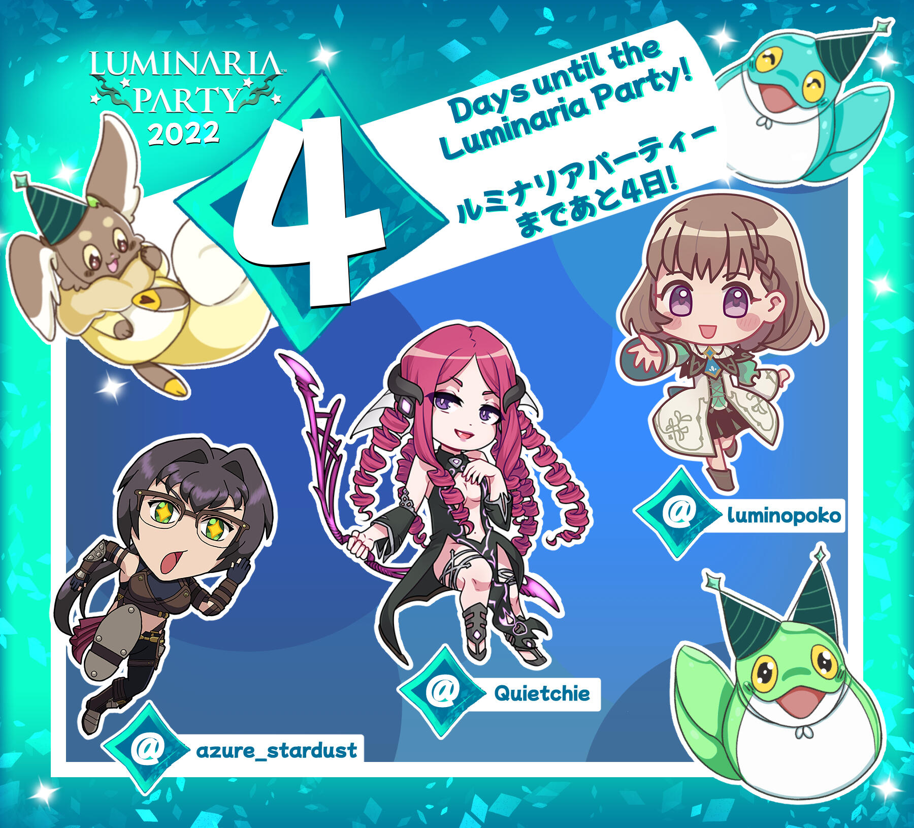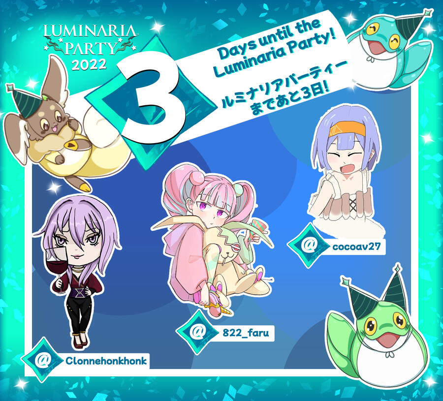 ✨The #TalesofLuminaria party is in 3 days! 72 hours remain!✨✨#ルミナリア パーティーまであと3日! 残り72時間!✨Lisette 🔫 リゼット | @Clonnehonkhonk💚